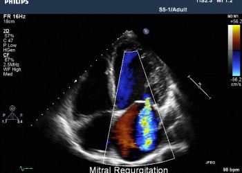 iv) Ecocardiografia: apreciază gradul regurgitării, permite măsurarea cavităţilor cardiace şi aprecierea presiunilor pulmonare.